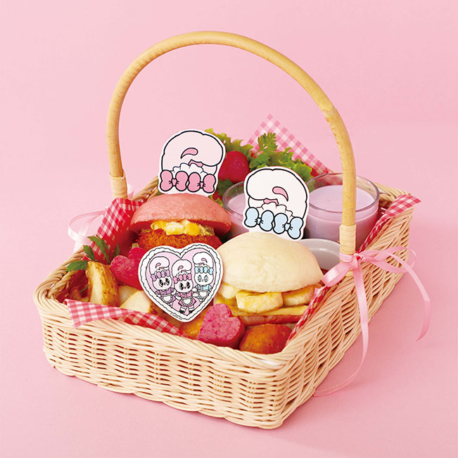 バニーズたちとのうきうきピクニック気分を味わえるバーガーバスケットは、大好きなお友達やパートナーとシェアするのにぴったりなボリューム。