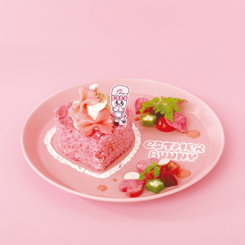 リボンバニーをイメージしたピンクカラーのチキンクリームリゾットはラブリーなハート型♡