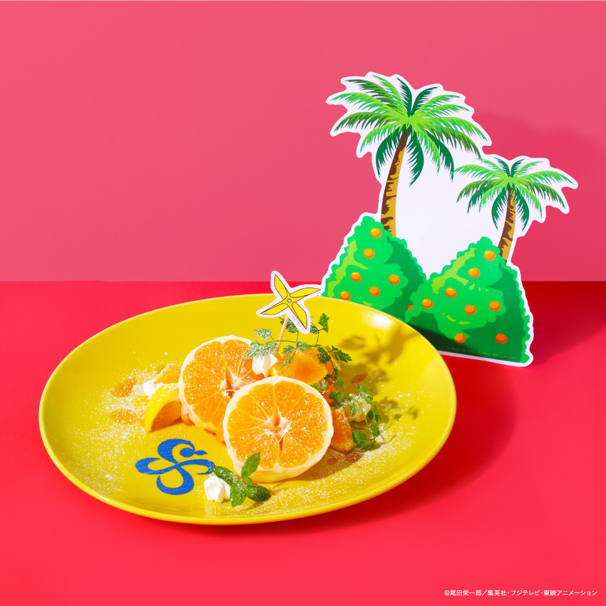 ナミが育ったココヤシ村にある、ベルメールのみかん畑をイメージしたみかん大福プレートです。ナミやベルメールのようにつややかなお肌を保つための一品としておすすめです。